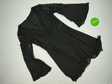 Czarna sukienka damska z długim rękawem, rozmiar XL. - Fason: dopasowany, długość mini/tuż przed kolano; lekko marszczona po bokach, co podkreśla sylwetkę i dodaje elastyczności w biodrach. - Deko...