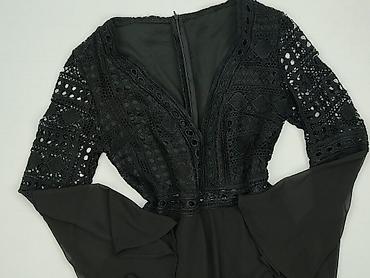 Czarna sukienka damska z koronką, rozmiar M - Fason: rozkloszowana spódnica, dopasowana góra - Dekolt: okrągły - Rękawy: 3/4 z ażurowej koronki - Wstawki: koronkowy karczek i rękawy - Tył: ozdobna...