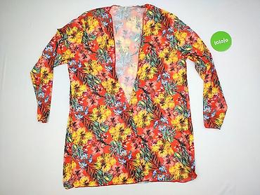 Sukienka/kimono plażowe damskie z lekkiej, przewiewnej tkaniny w tropikalny wzór. - Fason luźny, prosty, z krótkim rękawem typu kimono. - Dekolt w kształcie litery V z troczkiem do wiązania. - Dół...
