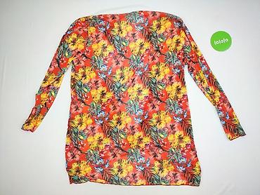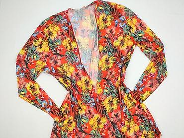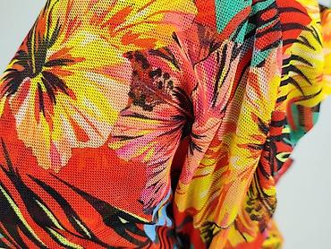 Sukienka damska z siateczkowej dzianiny, kolorowy tropikalny print - Krój: luźny, taliowany marszczeniem/ściągnięciem w pasie, krótkie rękawki typu kimono, okrągły dekolt - Wzór: wielobarwne kwiat...