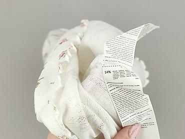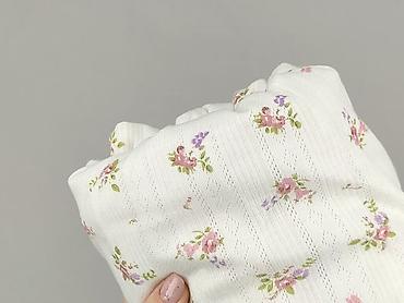 - Kolor: ecru/śmietankowy z drobnym, różowo‑lawendowym, kwiatowym nadrukiem