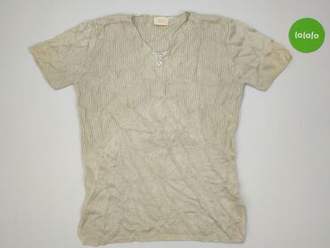 Damski sweter z krótkim rękawem - Krój: klasyczny, lekko dopasowany, z okrągłym dekoltem - Rękaw: krótki, wykończony ściągaczem - Wykończenia: prążkowane ściągacze przy dekolcie, rękawach i u dołu...