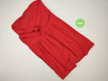 Sukienka damska w kolorze intensywnej czerwieni. - Fason: luźny, z odcięciem w talii i kilkoma poziomymi marszczeniami/zakładkami tworzącymi objętościowy dół. - Dekolt: okrągły. - Rękaw: krótki. -...
