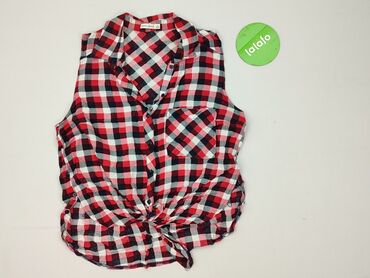 Koszula bez rękawów Bershka BSK GIRL - Damska, rozmiar XS (MEX 24) - Klasyczna krata: czerwono-granatowo-biała - Kołnierzyk, zapięcie na guziki z przodu - Kieszeń na piersi z kontrastowym ułożenie...