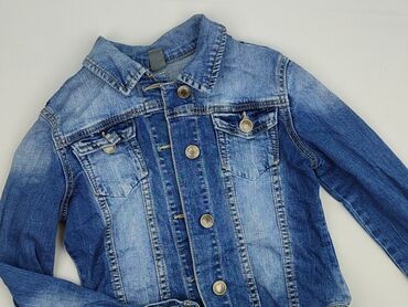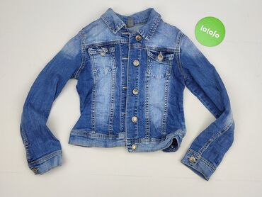 Jeansowa kurtka dla dziewczynki - Typ: kurtka dżinsowa (katana) - Kolor: jasny denim z przetarciami i efektem sprania - Fason: klasyczny, zapinany na metalowe napy - Rozmiar z metki: 152 (dziewczę...