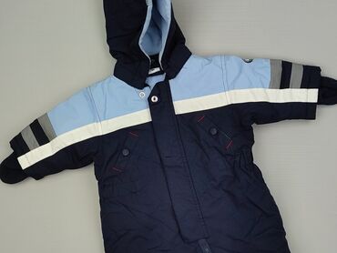 Kombinezon zimowy dla niemowlaka Disney Baby - Model: jednoczęściowy kombinezon/śpiworek z kapturem - Wzór: granatowa tkanina w różowo‑białe grafiki Myszki Minnie i śnieżynki - Zapięcie: długi zam...