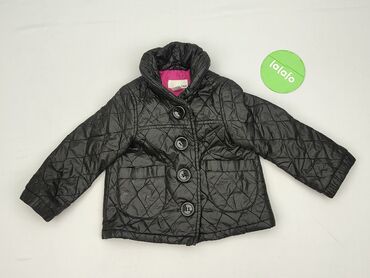 Dla: dziewczynka (baby/kids), używane. Rozmiar z metki: 104 cm / 3–4 lata. Marka: H&M. Kolor: czarny z różową podszewką. Zapięcie: na guziki. Kieszenie: 2. Styl: pikowany.