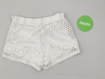 Białe koronkowe szorty damskie Yups, rozmiar S. - Ażurowa, szydełkowa koronka na wierzchu z dekoracyjnym pasem okrągłych motywów przy nogawkach - Delikatnie falowany brzeg (scallop) u dołu - Elast...Stan: