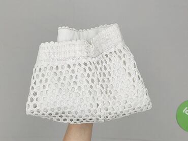 Białe koronkowe szorty damskie Yups, rozmiar S. - Ażurowa, szydełkowa koronka na wierzchu z dekoracyjnym pasem okrągłych motywów przy nogawkach - Delikatnie falowany brzeg (scallop) u dołu - Elast...