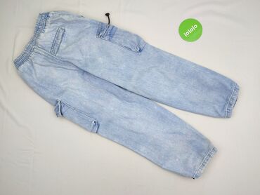Jeansy dziecięce typu cargo, szeroka nogawka - Wiek/rozmiar z metki: 12–13 lat - Skład materiału: 52% bawełna, 40% poliester, 8% wiskoza - Kolor: klasyczny denim niebieski - Pas: elastyczny, marsz...