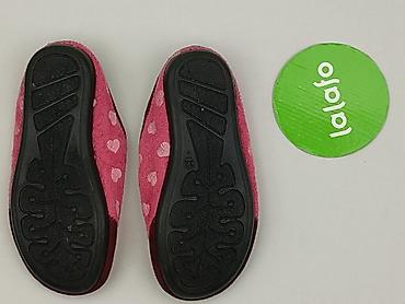 Różowe kapcie dziecięce z serduszkami - Model: kapcie/domowe buciki dla dziewczynki - Kolor: pastelowy róż z połyskującym, srebrnym nadrukiem serduszek - Zapięcie: szeroki rzep ułatwiający zakłada...