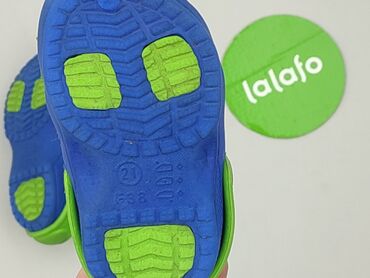 Dziecięce klapki/chodaki piankowe - Rozmiar: 21 (oznaczenie na podeszwie) - Kolor: granatowy z turkusowymi elementami - Materiał: lekka, elastyczna pianka EVA - Konstrukcja: liczne perforacje dla ...