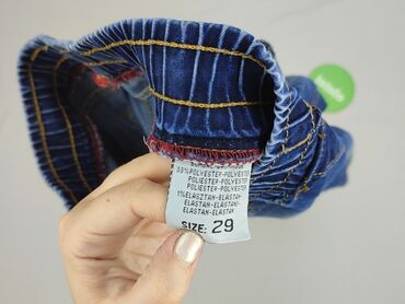Szorty damskie Sinsay, rozmiar S - Model: casualowe szorty z efektem sprania (denim look) - Kolor: niebieski melanż/stone-wash - Materiał: 100% bawełna (metka w środku) - Pas: elastyczna gumka + s...