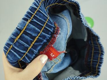 - Detale: kontrastowe przeszycia, ozdobna metka przy tylnej kieszeni