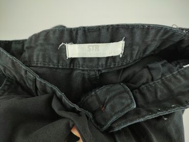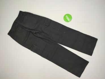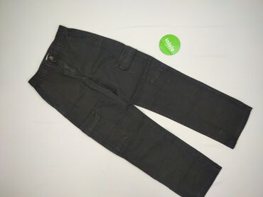 Czarne spodnie cargo - Fason: cargo, proste nogawki - Kolor: czarny/grafit - Zapięcie: suwak i guzik - Pas: szlufki na pasek - Kieszenie: 2 przednie skośne, 2 tylne naszywane, 2 duże kieszenie car...Stan: