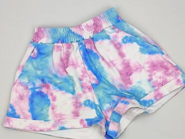 Kolorowe kolarki damskie Sinsay - Marka: Sinsay - Rozmiar: XS (z metki) - Krój: kolarki/bermudy, długość przed kolano - Wzór: tie-dye w odcieniach różu, żółci, błękitu i bieli; każda nogawka z nie...
