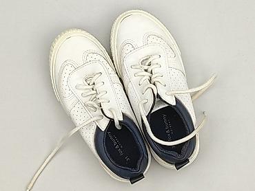 Białe tenisówki dziecięce – klasyczne, wsuwane - Rozmiar: 24 (oznaczenie wewnątrz buta) - Cholewka: wytrzymałe płótno w kolorze białym - Zapięcie: projekt pod sznurowadła (4 pary metalowych oczek)...