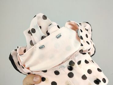 - Detale: delikatna, półprzezroczysta warstwa z nadrukiem w grochy; ozdobne falbany na ramionach