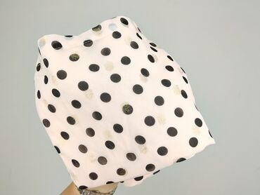 Biała bluzka w czarne grochy - Klasyczny wzór: gęste, równe kropki na białym tle - Delikatnie lejący, satynowy materiał z subtelnym połyskiem - Krótki rękaw typu cap - Okrągły dekolt z drobnymi za...