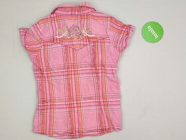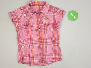 Bladoróżowa bluzka dziewczęca z krótkim rękawem i ozdobnym kołnierzykiem typu Peter Pan. - Fason: prosta, lekko taliowana, krótki rękaw z delikatnym marszczeniem na ramionach - Dekolt: okrągły z s...
