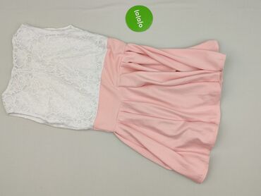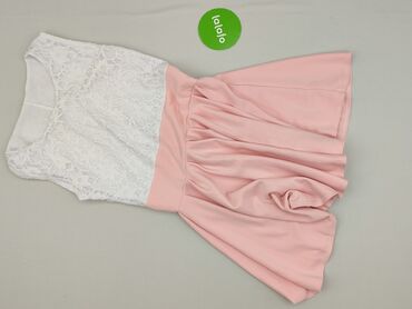 Sukienka koronkowa bez rękawów w kolorze pudrowego różu. - Krój: dopasowana góra, od pasa lekko rozkloszowana spódnica; długość przed kolano. - Materiał: miękka, elastyczna koronka z motywem róż, ...