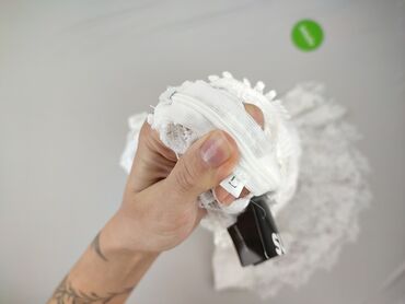 - Pasek: w zestawie cienki, biały z czarną krawędzią, zapinany na klamrę, z kokardką.