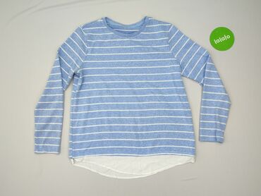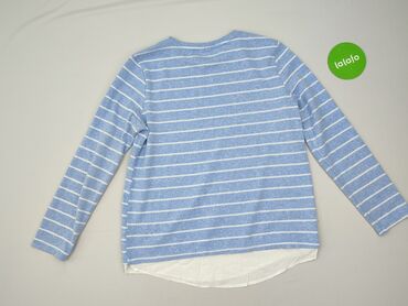 Sweter dziewczęcy z dzianiny, biały w poziome paski. - Wzór: delikatne niebieskie i bordowe pasy na całej długości (korpus i rękawy) - Dekolt: okrągły z ozdobnym sznurowaniem na przodzie - Rękawy: ...Stan: