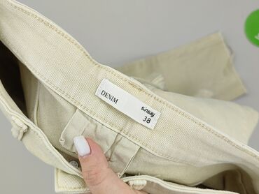 Beżowe spodnie jeansowe Sinsay - Marka: Sinsay (linia Denim) - Rozmiar z metki: 38 - Fason: prosta nogawka, lekko luźny krój typu straight/relaxed - Kolor: jasny beż/piaskowy - Zapięcie: guzik i z...Jasne dżinsy damskie marki Sinsay, rozmiar 38. Spodnie wykonane są z denimu w neutralnym, beżowym kolorze, co sprawia, że łatwo dopasować je do wielu stylizacji. Charakteryzują się klasycznym krojem z pięcioma kieszeniami i szlufkami na pasek, co zapewnia praktyczność i wygodę noszenia. Idealne na co dzień, zarówno do casualowych, jak i nieco bardziej eleganckich zestawów.