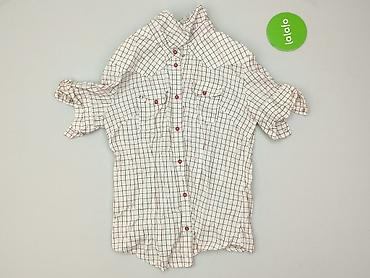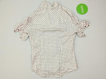 Koszula damska w kratę z krótkim rękawem - Klasyczny kołnierzyk, zapięcie na guziki na całej długości. - Niebiesko–różowo–biała krata. - Dwie kieszenie na piersi. - Ozdobne aplikacje z perełek i m...Stan: