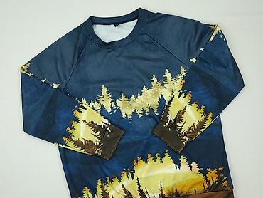 - Wzór: nadruk krajobrazu/lasu w odcieniach granatu, żółci i brązu, motyw biegnie przez przód, rękawy i dół