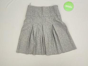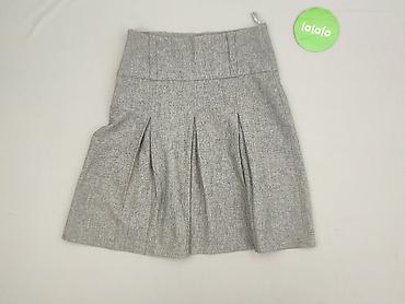 Szara spódnica z zakładkami, rozmiar 38. - Krój: lekko rozkloszowany, z głębokimi kontrafałdami z przodu i z tyłu, podkreślona talia. - Zapięcie: metalowy suwak z tyłu. - Tkanina: średniej grubości...