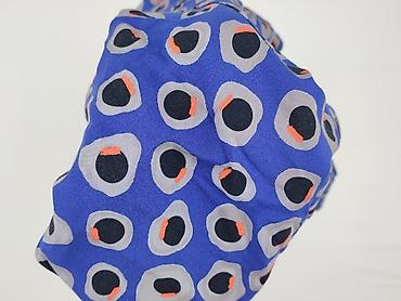- Kolor/przód: kobaltowy niebieski z abstrakcyjnym, okrągłym printem w odcieniach szarości, czerni i pomarańczu