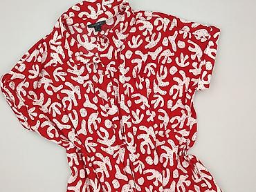 Sukienka damska Esmara - Fason: mini, lekko trapezowy, z krótkim rękawem - Dekolt: stójka/golfik - Kolor i wzór: czerwone tło, biały abstrakcyjny nadruk all-over - Tkanina: żakardowo–prążkowana, e...