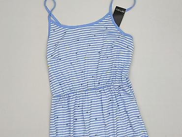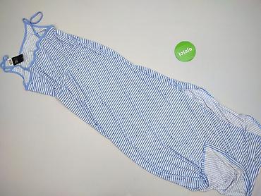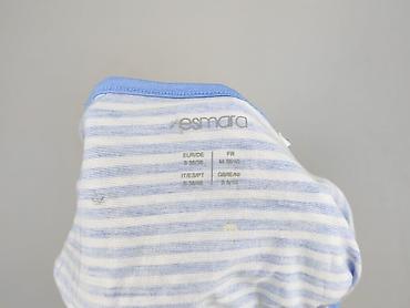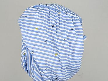 - Wzór: niebiesko‑białe, poziome paski z drobnym nadrukiem wakacyjnych motywów (palemki/ptaki) w granacie i żółci