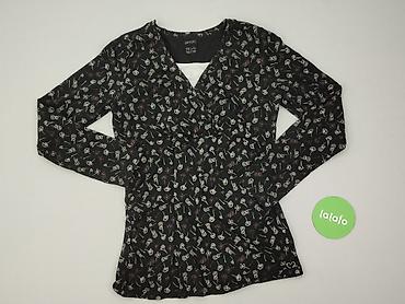 Bluzka damska Esmara - Fason: lekko luźny, z dekoltem w serek i długim rękawem - Wzór: kwiatowy na czarnym tle (odcienie różu, błękitu i ecru) - Materiał: 100% poliester (miękki, lejący; metka ze ...