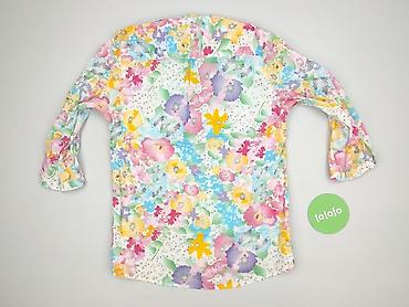Bluzka damska Esmara, rozmiar EU 38 (GB 12, FR 40, IT/ES/PT 40). Lekka, półtransparentna tkanina z barwnym, akwarelowym wzorem kwiatowym w pastelowych odcieniach: różu, żółci, błękitu, zieleni i fioletu.