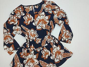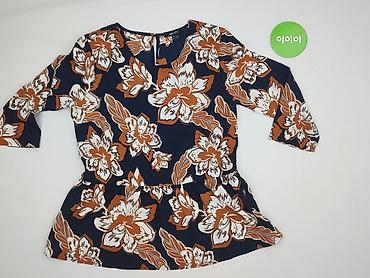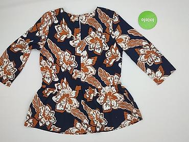 Bluzka damska Esmara - Fason: lekko rozkloszowany dół z marszczeniem w talii (peplum), rękaw 3/4, okrągły dekolt. - Wzór: duże kwiaty w odcieniach rudo‑brązowym i bieli na ciemnogranatowym tle. - ...