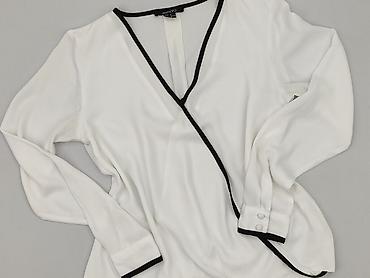 Stylowa, uniwersalna bluzka idealna do biura i na co dzień – elegancki kontrast lamówki podkreśla kopertowy fason i optycznie wysmukla sylwetkę. Dla kobiet. Używana. Stan: bardzo dobry.