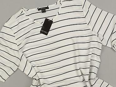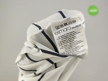 Bluzka damska Esmara w paski - Model: krótki rękaw, okrągły dekolt - Wzór: biało-granatowe, poziome paski w stylu marynistycznym, szeroki ściągacz u dołu i na rękawach - Materiał: dzianina swetrow...Stan: