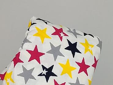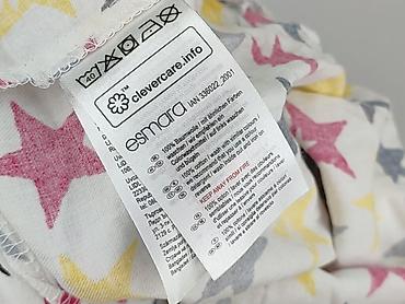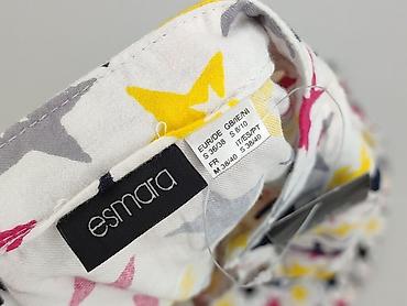 Sukienka/koszula damska Esmara – model z długim rękawem, nadruk w kolorowe gwiazdy (żółte, różowe, szare i czarne) na białym tle. Luźny, koszulowy krój z zaokrąglonym dołem, zapięcie częściowe na guziki pod szyją (plisa), kołnierzyk stójka. Na piersi kieszonka z kontrastową lamówką. Mankiety zapinane na guziki.