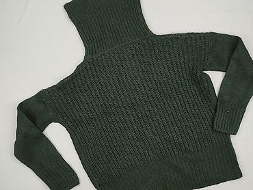Sweter damski z golfem, gruby splot, kolor morsko‑zielony - Fason: krótki, lekko oversize z obniżoną linią ramion; elastyczne ściągacze przy dole, mankietach i przy golfie - Splot: wyraźna, mięsis...