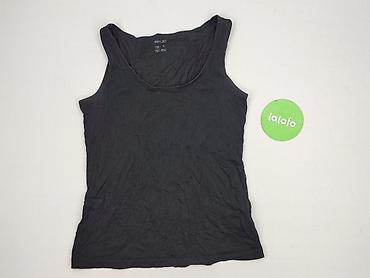 Czarna damska koszulka bez rękawów (top) - Krój: dopasowany, okrągły dekolt, ramiączka średniej szerokości - Kolor: czarny - Rozmiar z metki: S (EUR S, US S, CA P, CN 165/88A, MX CH) - Materiał: l...