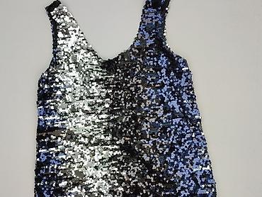 Czarny top damski C&A, rozmiar L - Krój: bez rękawów, lekko rozszerzany, okrągły dekolt - Materiał: elastyczna siateczka zewnętrzna w całości wyszywana czarnymi i srebrzystymi cekinami; wewnątrz g...