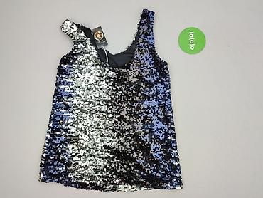 Bluzka damska bez rękawów z połyskującymi cekinami/srebrnymi aplikacjami na całej powierzchni. - Krój: prosty, top typu tank z okrągłym dekoltem - Kolorystyka: srebrny metaliczny połysk na czarnym...