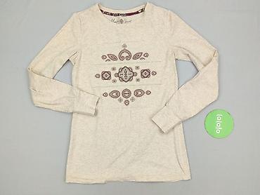 Bluzka damska z długim rękawem, rozmiar XS. - Kolor: ecru/kremowy z szaro‑czarnym, etniczno‑geometrycznym wzorem na całej powierzchni - Krój: prosta, lekko luźna - Dekolt: okrągły - Rękawy: długie...