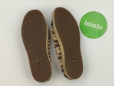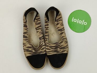 Espadryle damskie z ozdobnymi kamieniami – rozmiar 39 - Kolor: karmelowy/brązowy - Cholewka: zamszopodobny materiał - Ozdoby: duże, fasetowane kryształki w złotych oprawach, naszyte na szerokie, k...