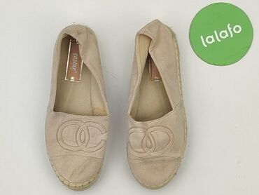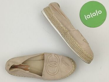 Damskie espadryle beżowe - Rozmiar: 40 (wkładka ok. 26 cm) - Model: klasyczne slip-on - Cholewka: tekstylna, przewiewna tkanina w kolorze beżowym - Wykończenie: charakterystyczne, grube przeszycia...