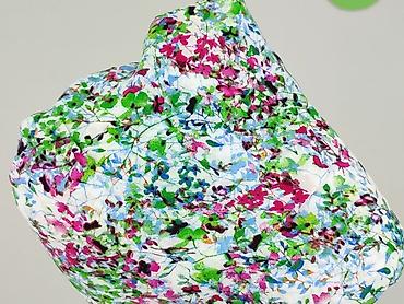 - Wzór: drobne, gęste kwiaty w odcieniach zieleni, różu, błękitu i bieli