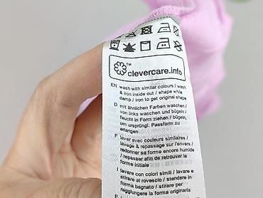 - Metki pielęgnacyjne: pranie z podobnymi kolorami, na lewej stronie; formować i prasować na wilgotno, temp. 110°C