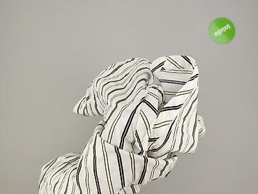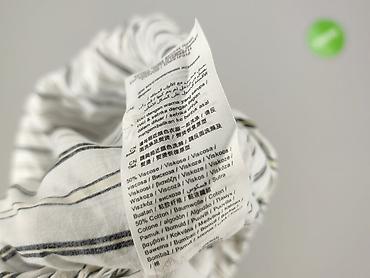 - Wzór: pionowe paski w odcieniach czerni, szarości i subtelnego beżu na białym tle